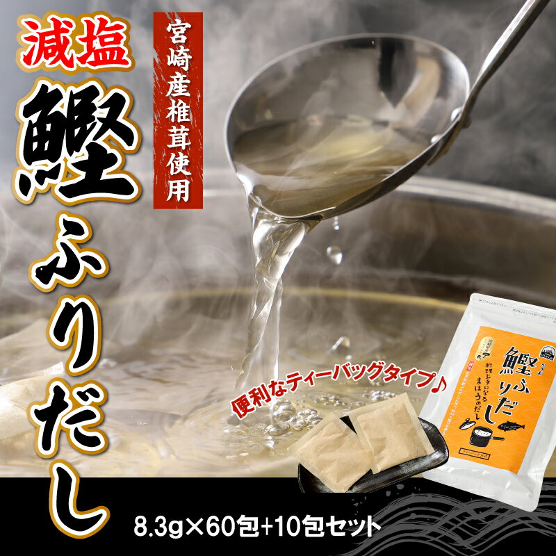 【ふるさと納税】減塩鰹ふりだし 8.3g×60包+10包セット - 減塩だしパック 出汁パック ティーバッグタイプ 和風だし 汁物/茶碗蒸し/煮物/鍋/おでん/炊き込みご飯に 簡単 塩分が気になる方 送料無料 K06_0003 【宮崎県木城町】
