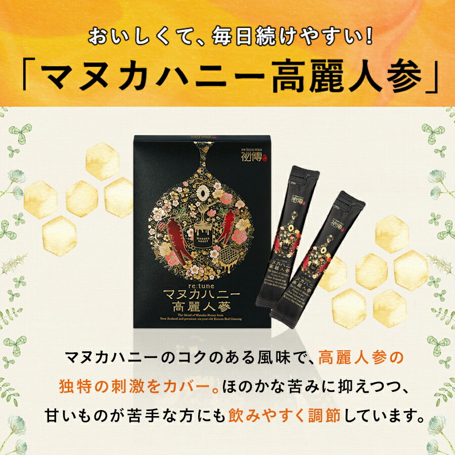 おいしくて、毎日続けやすい!マヌカハニーのコクのある風味で、高麗人参の独特の刺激をカバー。