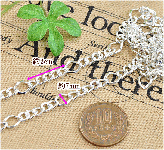 フィガロチェーン ホワイトシルバー 約1m 《 チェーン 鎖 ネックレス バッグ ショルダー キーホルダー ストラップ パーツ ブレスレット アクセサリー パーツ ハンドメイド 手芸 手作り 》
