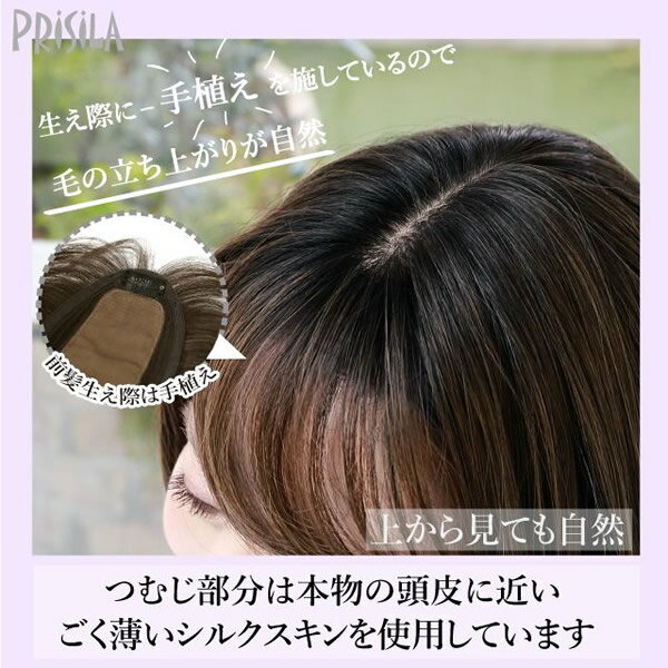 ・スキンサイズを大きくした安心のカバー範囲! ・生え際は手植えになって自然な毛の立ち上がりに! ・つむじ部分は最高級スキンを使用! 医療用ウィッグにも使用されている本物の頭皮に近いごく薄いシルクスキンという素材を採用しています。